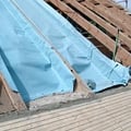 Wenn die finanzielle Situation eine Komplettsanierung nicht zulässt, kann man Zellulosedämmung auch zwischen Innenverkleidung und die noch intakte Dachdeckung blasen - die Dämmung erhöht das