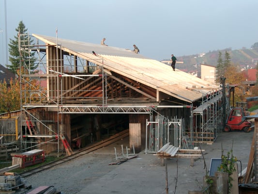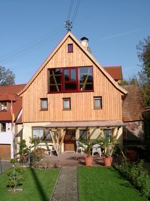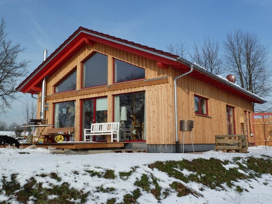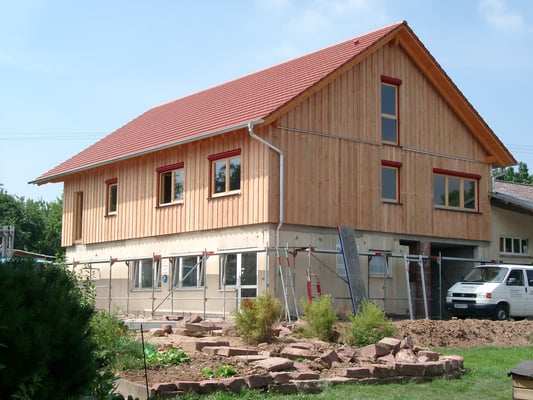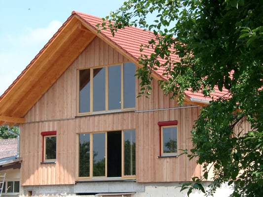 Dies war eines unserer ersten Holzhäuser im neu übernommenen Familienbetrieb. Hier finden Sie ein Referenzschreiben unserer Kunden.